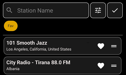 to add the station to your favourites. Tap on a station item to start playback.